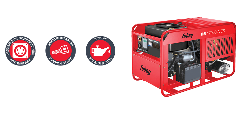 Конструктивное исполнение с открытой рамой обеспечивает лёгкий доступ к обслуживаемым узлам и агрегатам.Дизельная электростанция FUBAG DS 17000 A ES в продаже по цене 0 руб. в Интернет-магазине Проф-инструмент с доставкой в Симферополе и Крыму. Звоните по телефону +8 (800) 302-10-51.