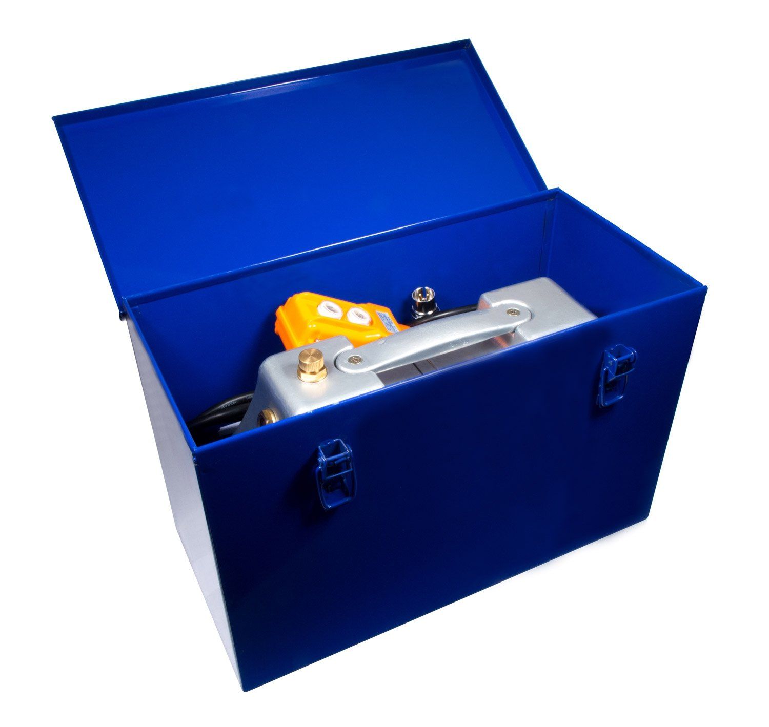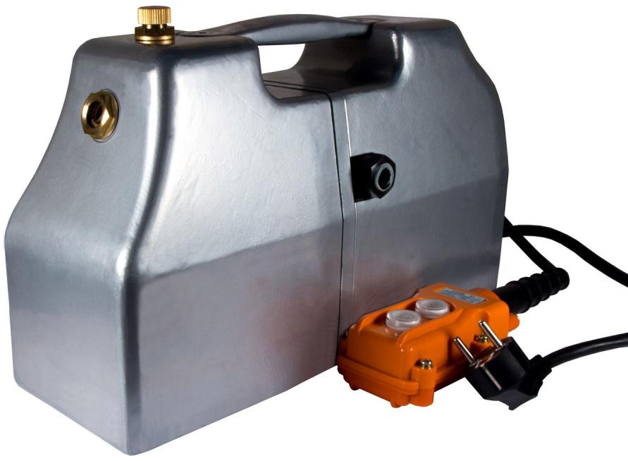 Агрегат с электроприводом с возможностью подключения 1 гидравлического инструмента одностороннего действия, с дистанционным управлением, датчиком автоматического сброса давления, манометром, регулятором рабочего давления.