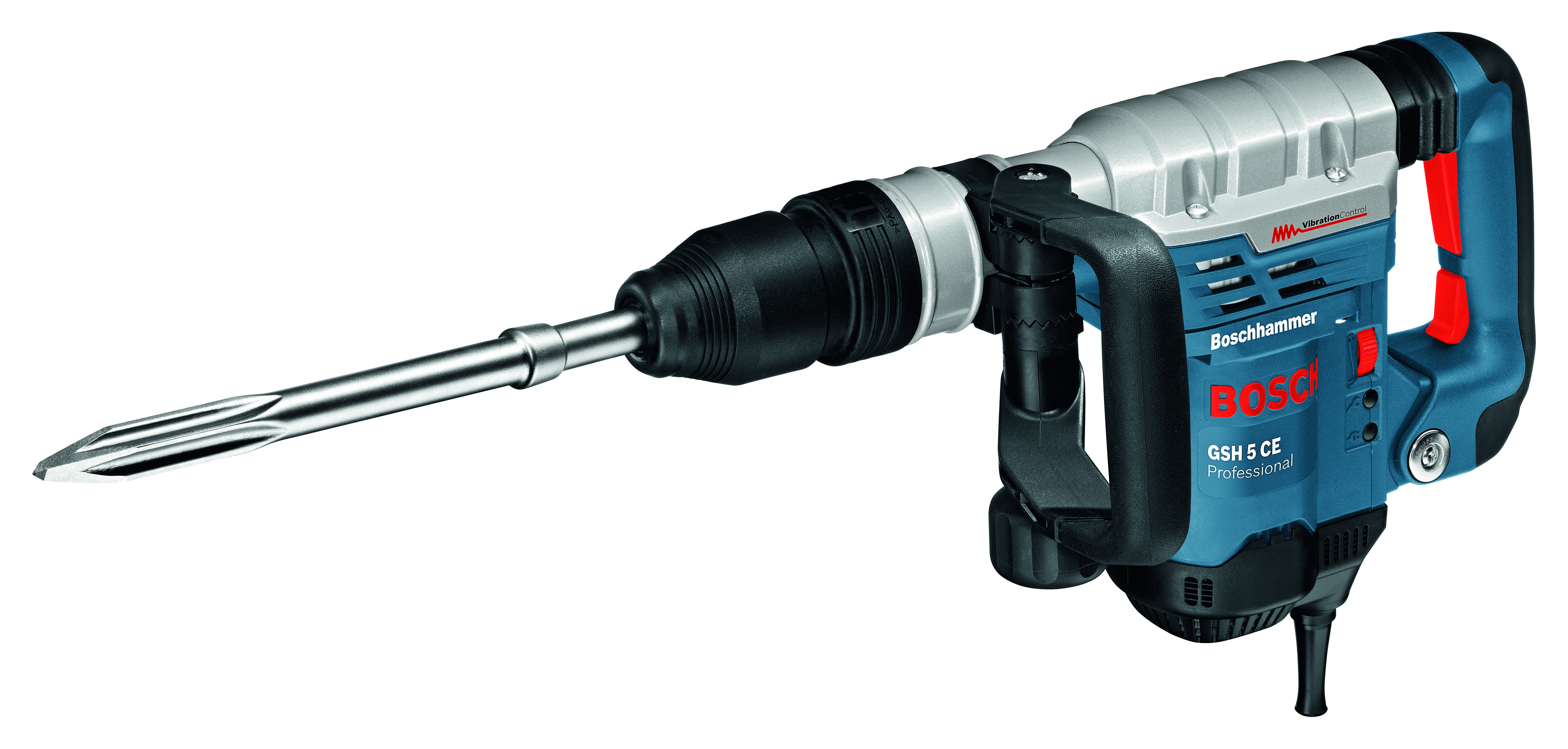 Отбойный молоток Bosch GSH 5CE 0611321000 - профессиональный инструмент мощностью 1150 Вт и энергией удара 83 Дж. Используется при демонтаже кирпичных и бетонных строений. В конструкции реализована система Vibration Control, эффективно снижающая уровень вибрации. Боковая рукоятка поворачивается на 360 градусов, что обеспечивает удобную работу в любом положении. Цельнометаллический корпус защищает внутренние элементы от повреждений.