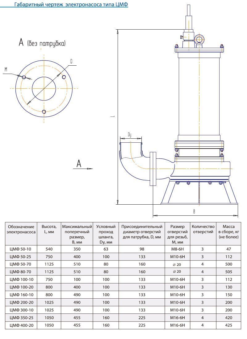 Передвижной погружной моноблочный центробежный электронасос ЦМФ 400-20 (далее - электронасос) предназначен для откачивания бытовых (фекальных) и производственных сточных вод температурой до 45°С с рН 6-8, плотностью до 1100 кг/м³, содержащих механические примеси (абразивные частицы) до 6% по объёму размером не более 10 мм, а также отдельные неабразивные механические включения размером не более 35 мм.