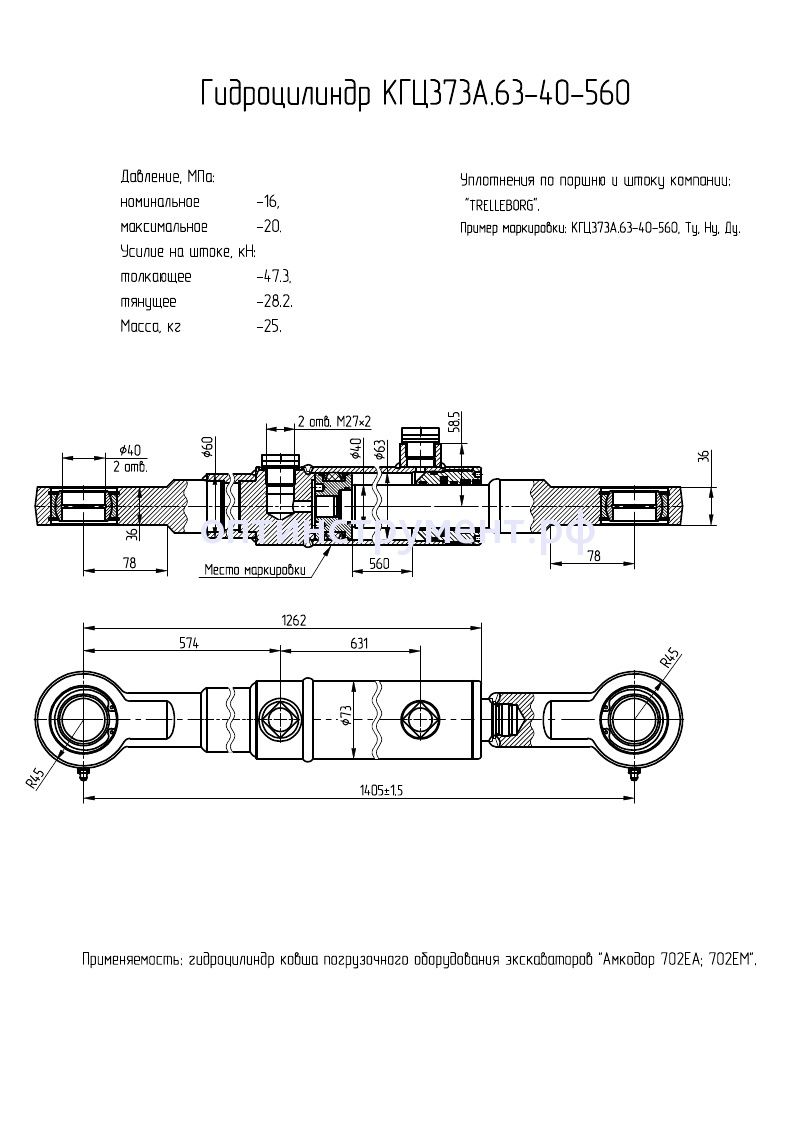 Гидроцилиндр ковша передней навески экскаваторов КГЦ 373А.63-40-560 в продаже по цене 13 440 руб. в Интернет-магазине Проф-инструмент с доставкой в Симферополе и Крыму. Звоните по телефону +8 (800) 302-10-51.