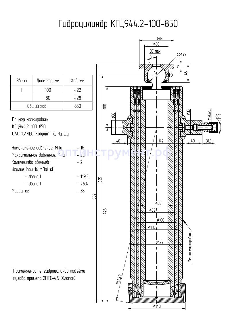 Гидроцилиндр КГЦ 944.2-100-850 в продаже по цене 21 105 руб. в Интернет-магазине Проф-инструмент с доставкой в Симферополе и Крыму. Звоните по телефону +8 (800) 302-10-51.