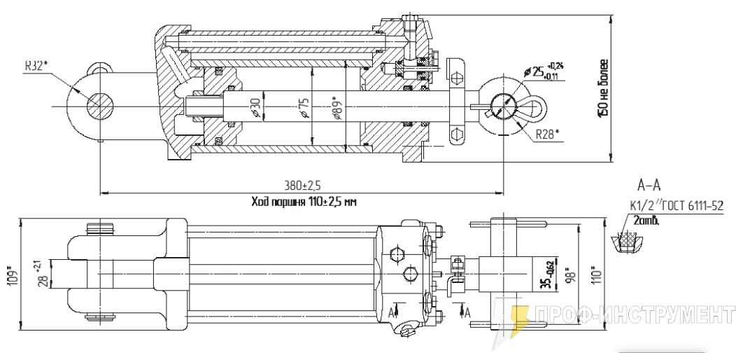 Гидроцилиндр С75/30х110-3.42 (Ц75х110-3) в продаже по цене в Интернет-магазине Проф-инструмент с доставкой в Симферополе и Крыму. Звоните по телефону +8 (800) 302-10-51.