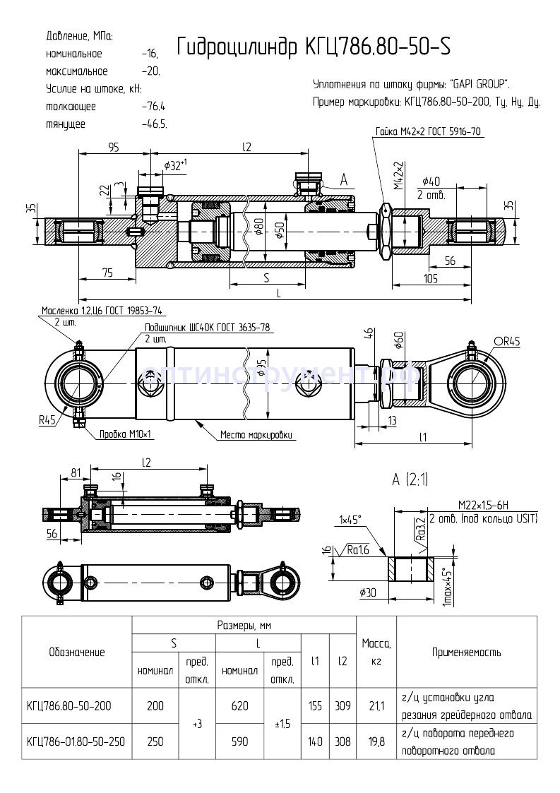 Гидроцилиндр установки угла резания грейдерного отвала КГЦ 786.80-50-200 в продаже по цене 17 370 руб. в Интернет-магазине Проф-инструмент с доставкой в Симферополе и Крыму. Звоните по телефону +8 (800) 302-10-51.