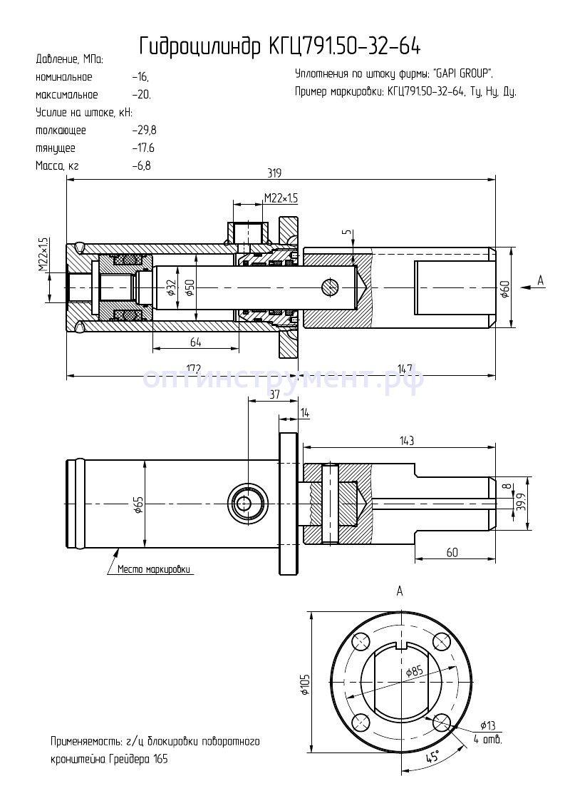 Гидроцилиндр блокировки поворотного кронштейна (автогрейдера 165) КГЦ 791.50-32-64 в продаже по цене 9 720 руб. в Интернет-магазине Проф-инструмент с доставкой в Симферополе и Крыму. Звоните по телефону +8 (800) 302-10-51.