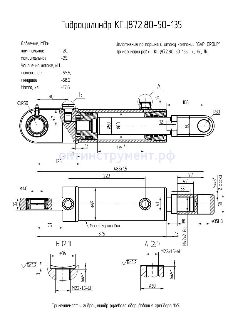 Гидроцилиндр рулевого оборудования грейдера "Амкодор 165" КГЦ 872.80-50-135 в продаже по цене 15 555 руб. в Интернет-магазине Проф-инструмент с доставкой в Симферополе и Крыму. Звоните по телефону +8 (800) 302-10-51.