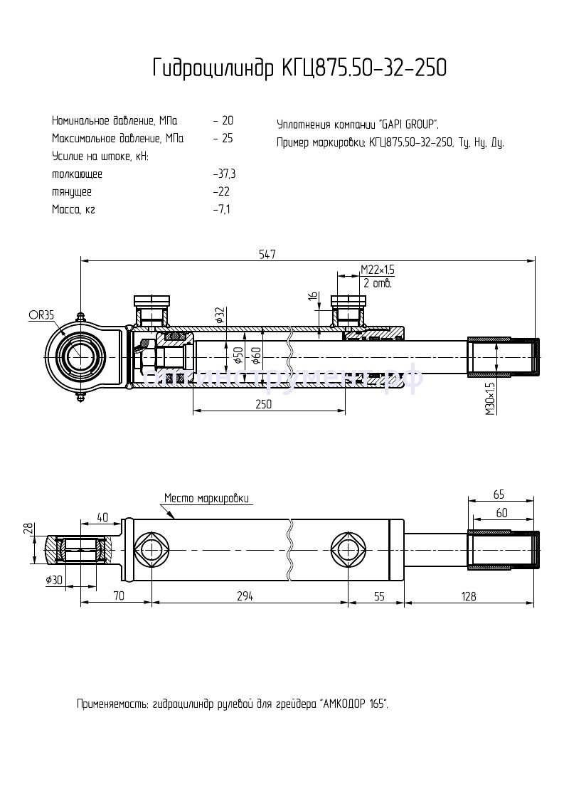 Гидроцилиндр рулевой для грейдера "Амкодор 165" КГЦ 875.50-32-250 в продаже по цене 10 125 руб. в Интернет-магазине Проф-инструмент с доставкой в Симферополе и Крыму. Звоните по телефону +8 (800) 302-10-51.