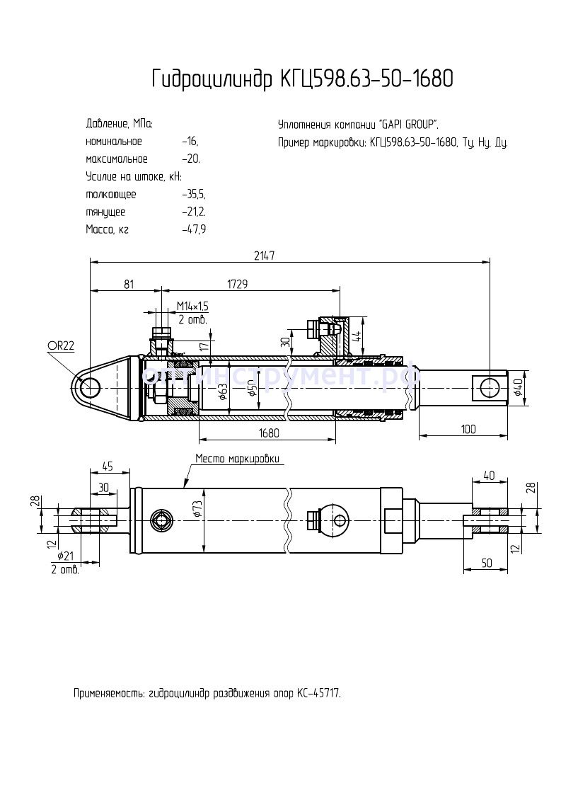 Гидроцилиндр раздвижения опор (Автокран КС-45717 Ивановец) КГЦ 598.63-50-1680 в продаже по цене 24 420 руб. в Интернет-магазине Проф-инструмент с доставкой в Симферополе и Крыму. Звоните по телефону +8 (800) 302-10-51.
