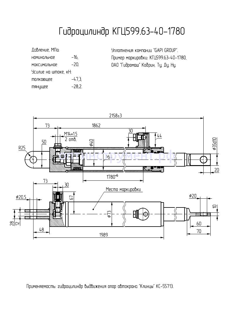 Гидроцилиндр выдвижения опор (Автокран "Клинцы КС-55713") КГЦ 599.63-40-1780 в продаже по цене 0 руб. в Интернет-магазине Проф-инструмент с доставкой в Симферополе и Крыму. Звоните по телефону +8 (800) 302-10-51.