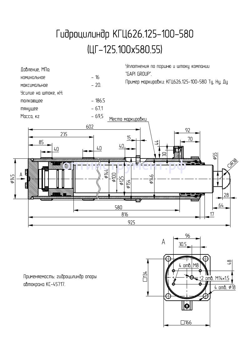 Гидроцилиндр опоры автокрана "КС-45717" КГЦ 626.125-100-580 в продаже по цене 32 880 руб. в Интернет-магазине Проф-инструмент с доставкой в Симферополе и Крыму. Звоните по телефону +8 (800) 302-10-51.