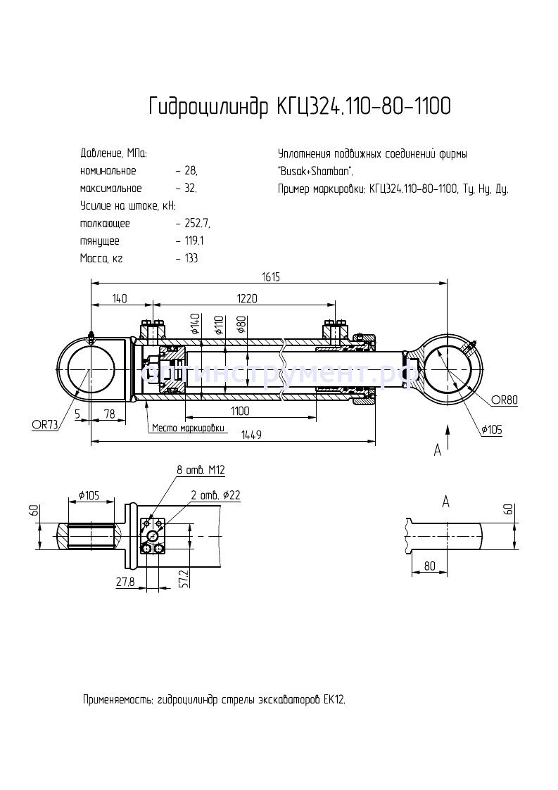 Гидроцилиндр стрелы экскаваторов "ЕК12"КГЦ 324.110-80-1100 в продаже по цене 43 095 руб. в Интернет-магазине Проф-инструмент с доставкой в Симферополе и Крыму. Звоните по телефону +8 (800) 302-10-51.
