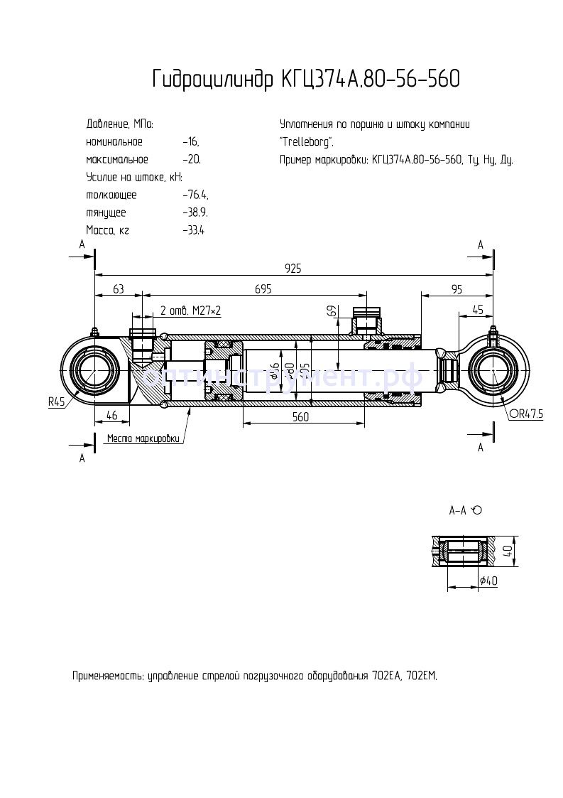 Гидроцилиндр управления стрелой погрузочного оборудования КГЦ 374А.80-56-560 в продаже по цене 16 395 руб. в Интернет-магазине Проф-инструмент с доставкой в Симферополе и Крыму. Звоните по телефону +8 (800) 302-10-51.