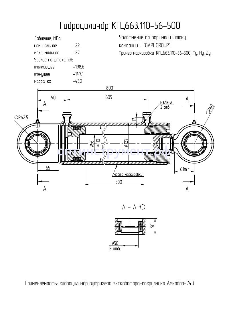 Гидроцилиндр аутригера экскаватора-погрузчика «Амкодор-743» КГЦ 663.110-56-500 в продаже по цене 20 985 руб. в Интернет-магазине Проф-инструмент с доставкой в Симферополе и Крыму. Звоните по телефону +8 (800) 302-10-51.