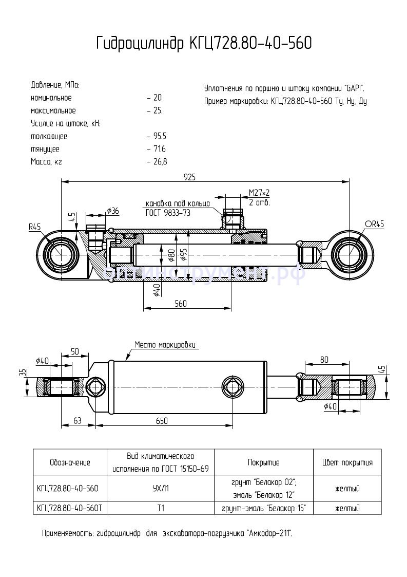 Гидроцилиндр для экскаватора-погрузчика "Амкодор-211" КГЦ 728.80-40-560 в продаже по цене 14 850 руб. в Интернет-магазине Проф-инструмент с доставкой в Симферополе и Крыму. Звоните по телефону +8 (800) 302-10-51.