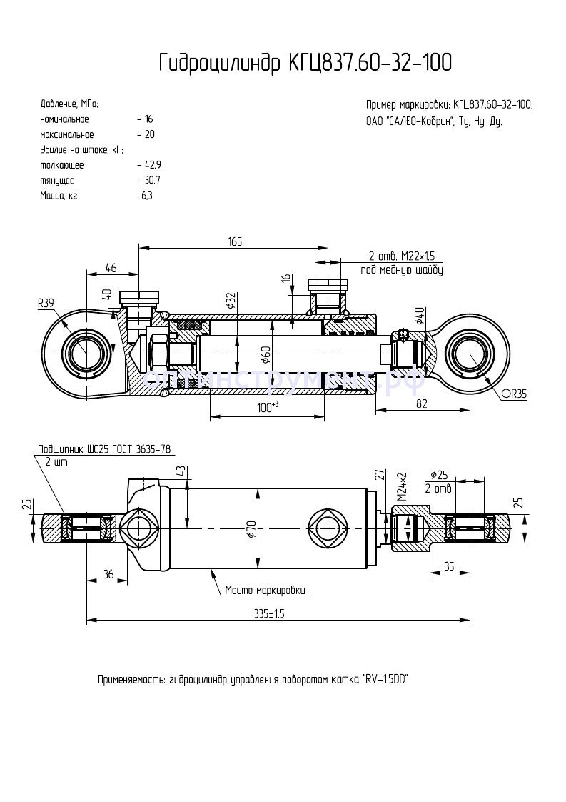 Гидроцилиндр управления поворотом катка "RV-1.5DD" КГЦ 837.60-32-100 в продаже по цене 0 руб. в Интернет-магазине Проф-инструмент с доставкой в Симферополе и Крыму. Звоните по телефону +8 (800) 302-10-51.