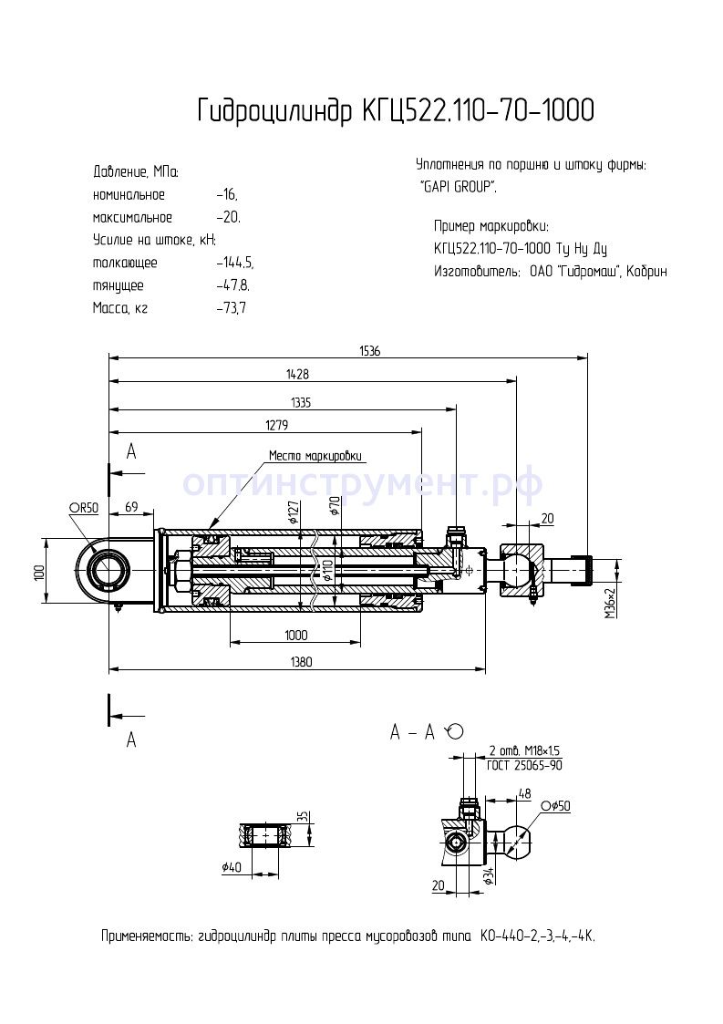 Гидроцилиндр плиты пресса мусоровозов КГЦ 522.110-70-1000 в продаже по цене 33 090 руб. в Интернет-магазине Проф-инструмент с доставкой в Симферополе и Крыму. Звоните по телефону +8 (800) 302-10-51.