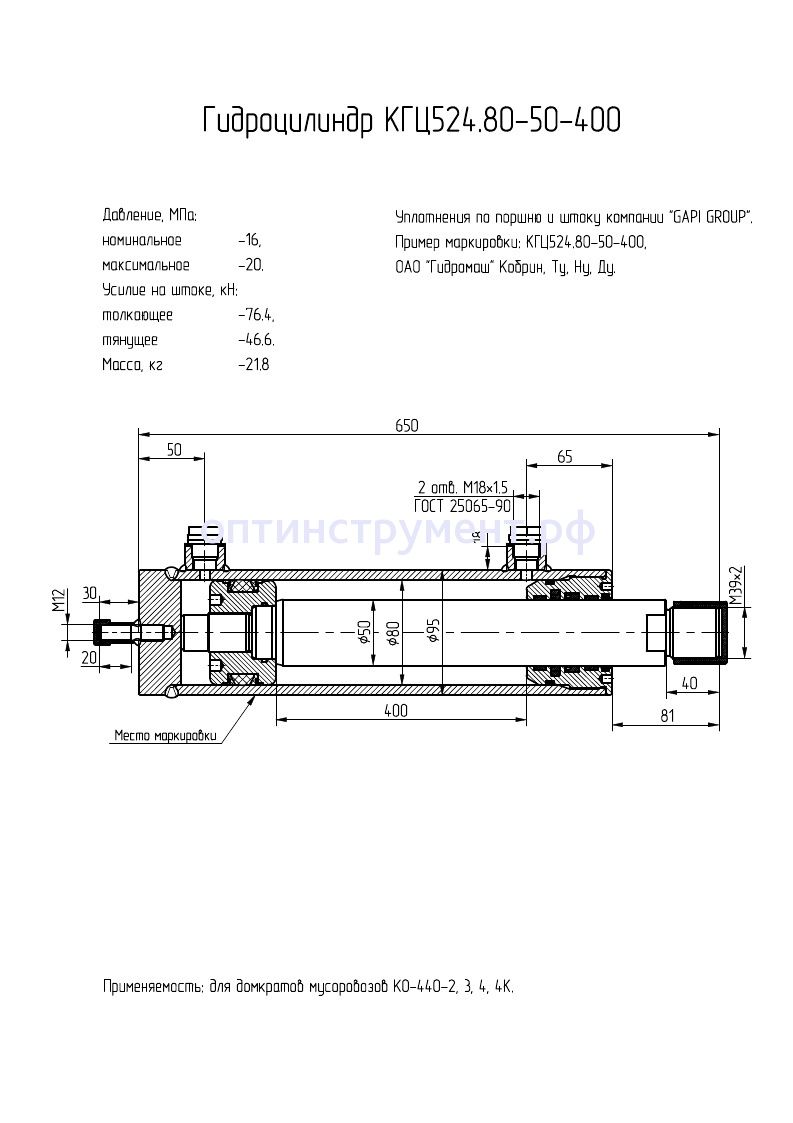 Гидроцилиндр для домкратов мусоровозов КГЦ 524.80-50-400 в продаже по цене 11 865 руб. в Интернет-магазине Проф-инструмент с доставкой в Симферополе и Крыму. Звоните по телефону +8 (800) 302-10-51.