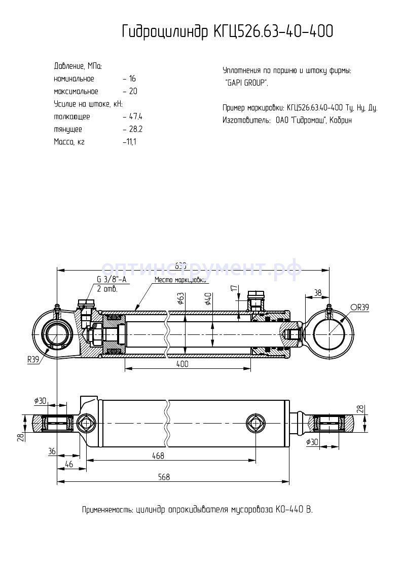 Гидроцилиндр опрокидывателя мусоровоза "КО-440В" КГЦ 526.63-40-400 в продаже по цене 10 170 руб. в Интернет-магазине Проф-инструмент с доставкой в Симферополе и Крыму. Звоните по телефону +8 (800) 302-10-51.