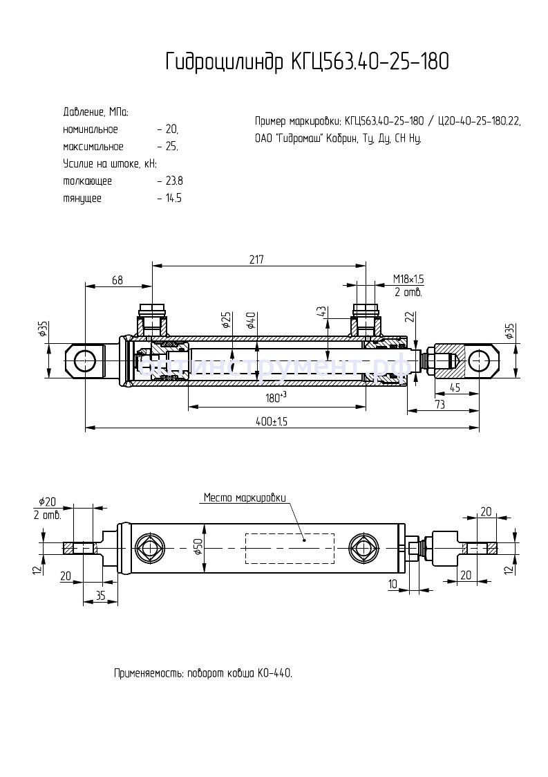 Гидроцилиндр поворота ковша мусоровоза КО-440, КГЦ 563.40-25-180 в продаже по цене 5 505 руб. в Интернет-магазине Проф-инструмент с доставкой в Симферополе и Крыму. Звоните по телефону +8 (800) 302-10-51.