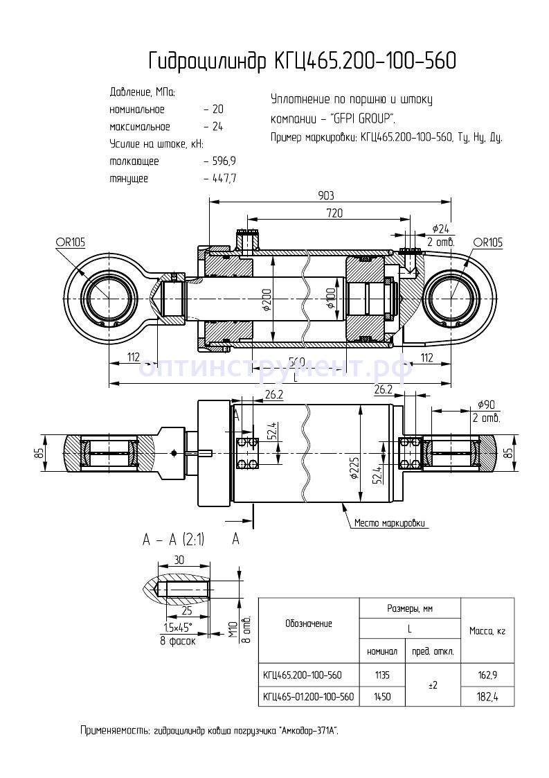 Гидроцилиндр ковша погрузчика "Амкодор-371А" КГЦ 465.200-100-560 в продаже по цене 82 500 руб. в Интернет-магазине Проф-инструмент с доставкой в Симферополе и Крыму. Звоните по телефону +8 (800) 302-10-51.