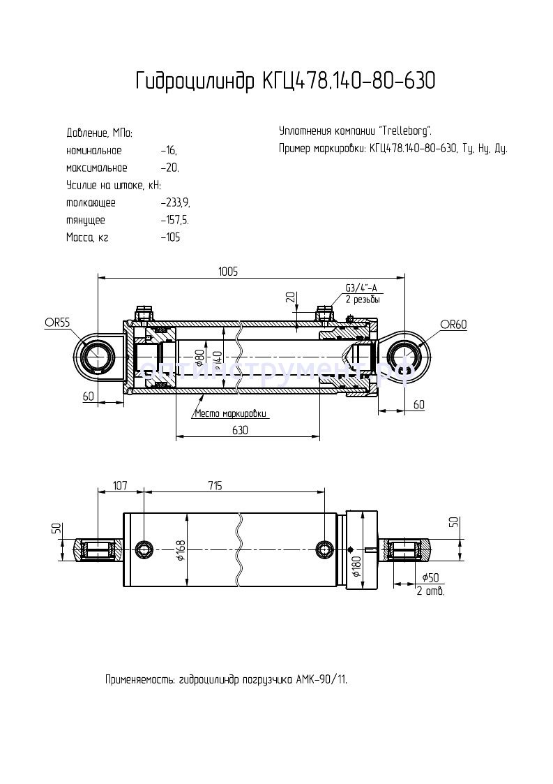 Гидроцилиндр для погрузчика "АМК-90/11" КГЦ 478.140-80-630 в продаже по цене 39 390 руб. в Интернет-магазине Проф-инструмент с доставкой в Симферополе и Крыму. Звоните по телефону +8 (800) 302-10-51.