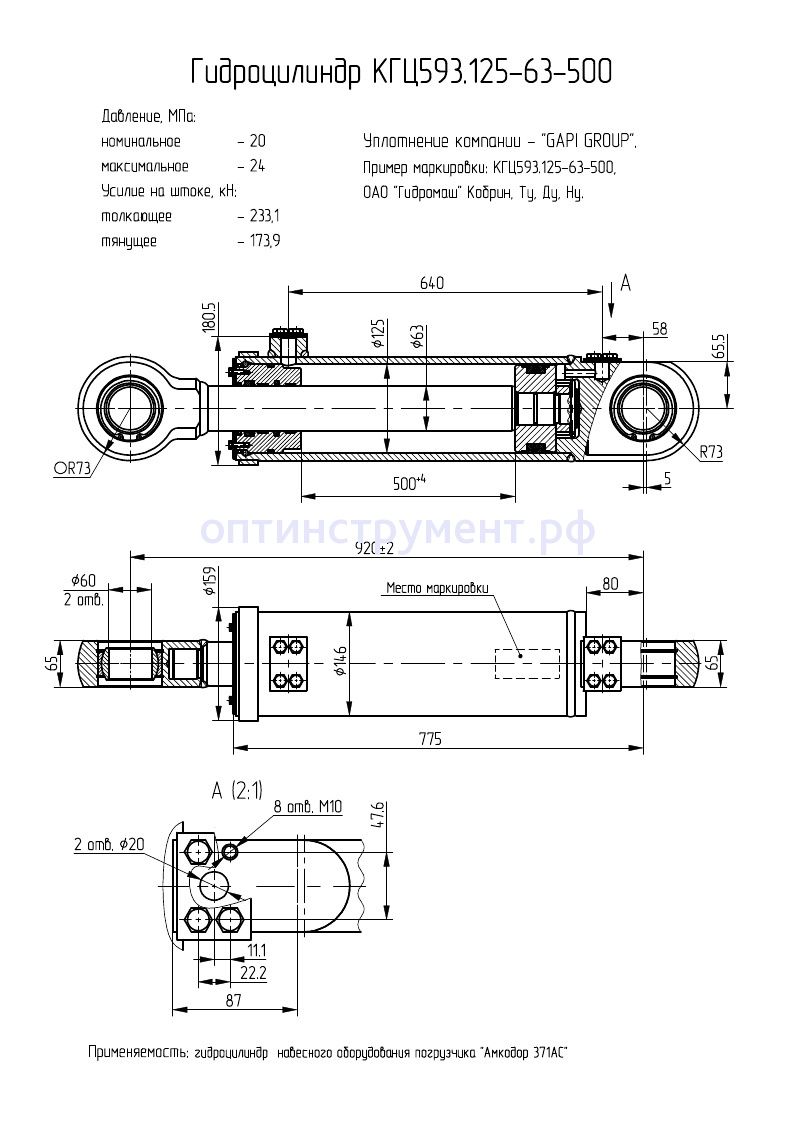 Гидроцилиндр навесного оборудования погрузчика "Амкодор 371AC" КГЦ 593.125-63-500 в продаже по цене 31 575 руб. в Интернет-магазине Проф-инструмент с доставкой в Симферополе и Крыму. Звоните по телефону +8 (800) 302-10-51.