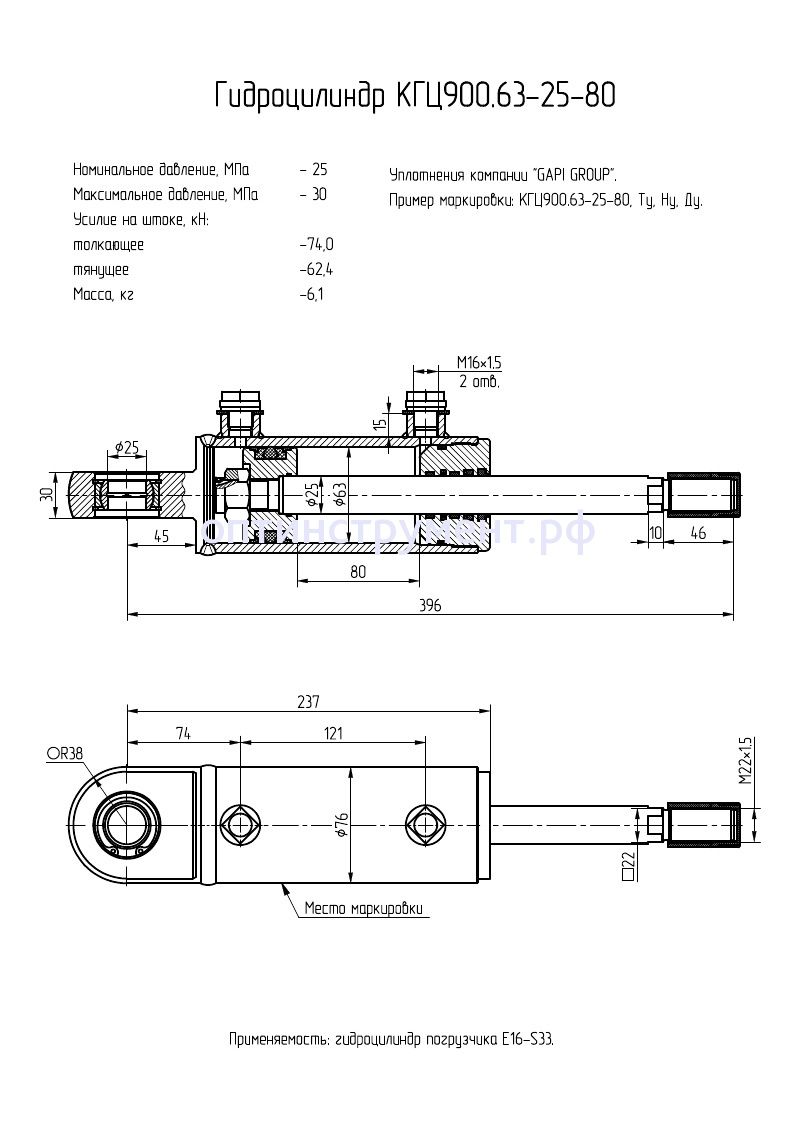 Гидроцилиндр погрузчика "Амкодор E16-S33" КГЦ 900.63-25-80 в продаже по цене 9 360 руб. в Интернет-магазине Проф-инструмент с доставкой в Симферополе и Крыму. Звоните по телефону +8 (800) 302-10-51.