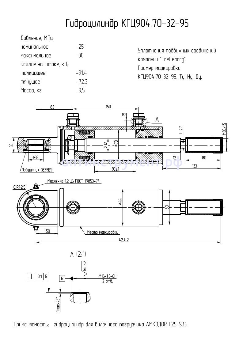 Гидроцилиндр для вилочного погрузчика "Амкодор Е25-S33" КГЦ 904.70-32-95 в продаже по цене 0 руб. в Интернет-магазине Проф-инструмент с доставкой в Симферополе и Крыму. Звоните по телефону +8 (800) 302-10-51.