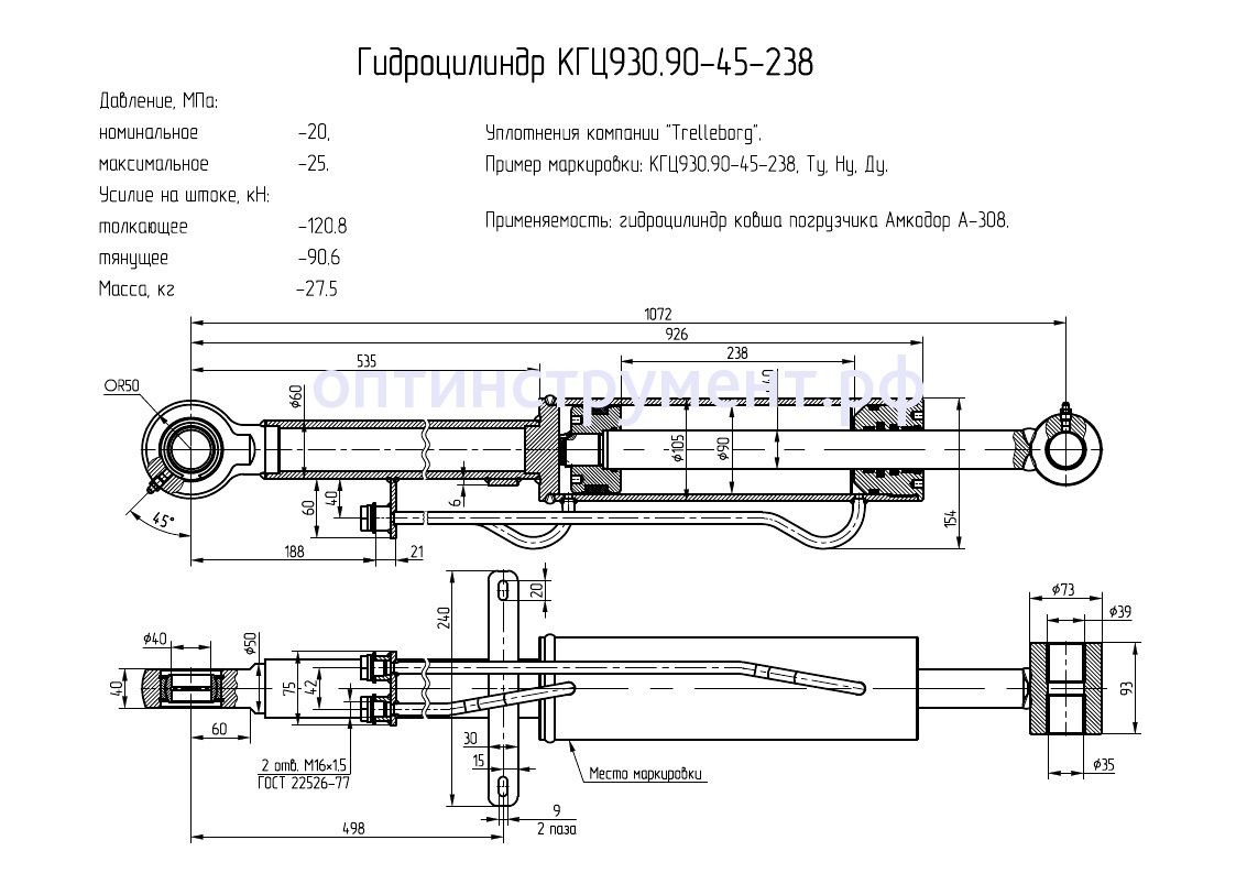 Гидроцилиндр ковша погрузчика "Амкодор А-308" КГЦ 930.90-45-238 в продаже по цене 0 руб. в Интернет-магазине Проф-инструмент с доставкой в Симферополе и Крыму. Звоните по телефону +8 (800) 302-10-51.