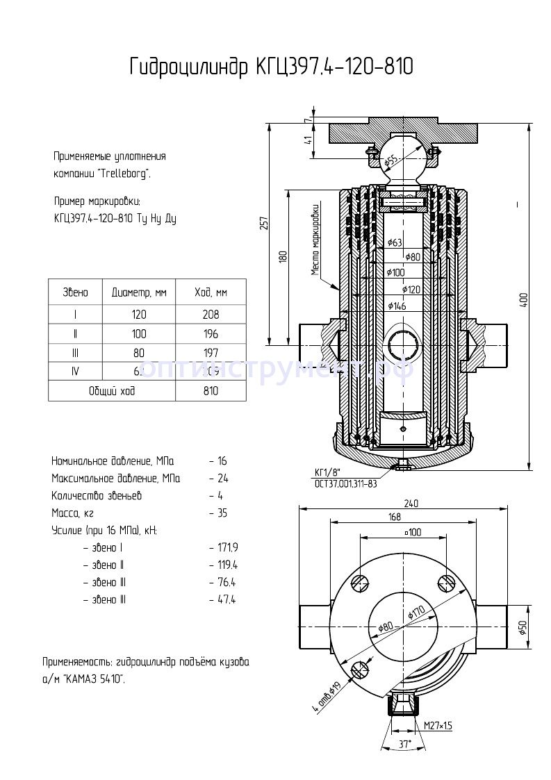 Гидроцилиндр подъёма кузова а/м "КАМАЗ 5410" КГЦ 397.4-120-810 в продаже по цене 0 руб. в Интернет-магазине Проф-инструмент с доставкой в Симферополе и Крыму. Звоните по телефону +8 (800) 302-10-51.