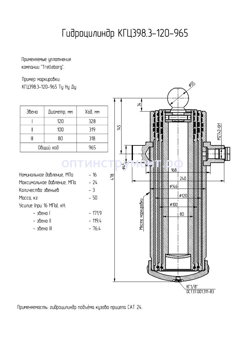 Гидроцилиндр подъёма кузова прицепа "САТ 24" КГЦ 398.3-120-965 в продаже по цене 0 руб. в Интернет-магазине Проф-инструмент с доставкой в Симферополе и Крыму. Звоните по телефону +8 (800) 302-10-51.