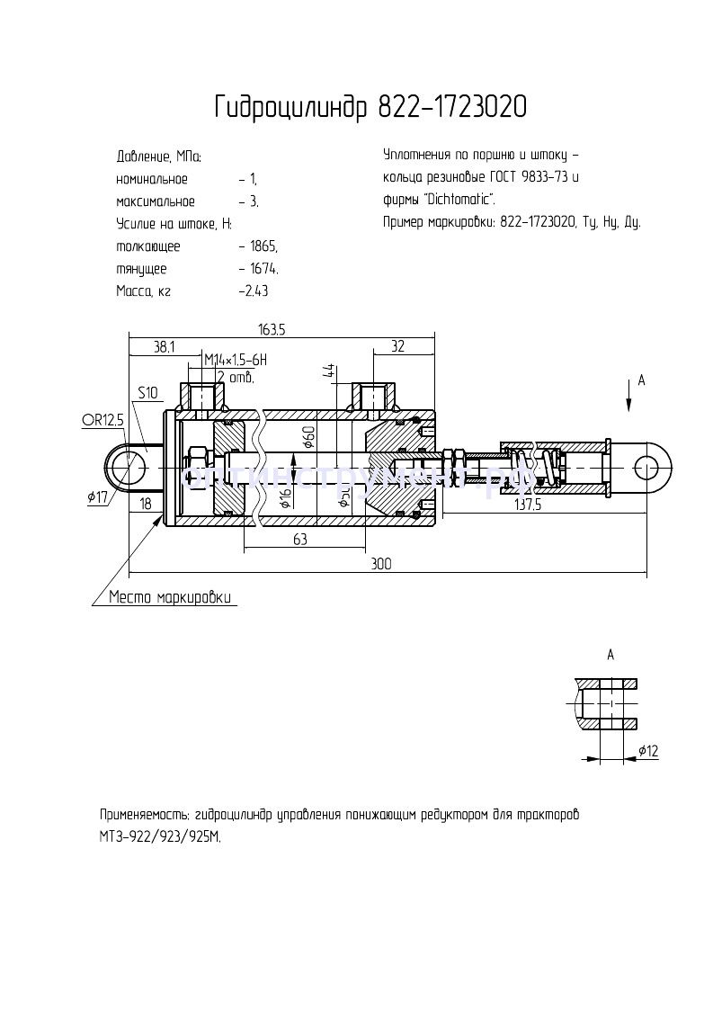Гидроцилиндр управления понижающим редуктором для тракторов "МТЗ" 822-1723020 в продаже по цене 3 585 руб. в Интернет-магазине Проф-инструмент с доставкой в Симферополе и Крыму. Звоните по телефону +8 (800) 302-10-51.