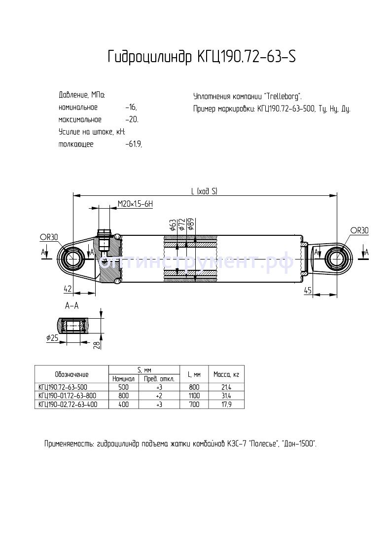 Гидроцилиндр подъема жатки комбайнов КГЦ 190.72-63-400 в продаже по цене 14 130 руб. в Интернет-магазине Проф-инструмент с доставкой в Симферополе и Крыму. Звоните по телефону +8 (800) 302-10-51.