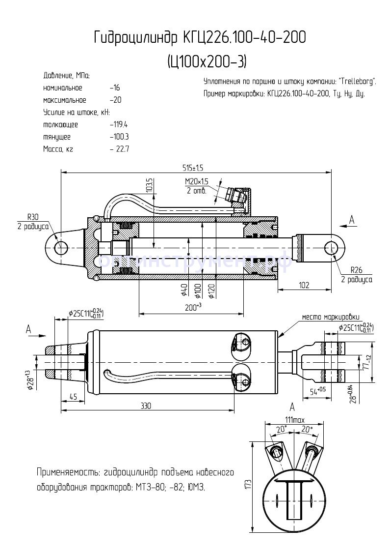 Гидроцилиндр задней навески тракторов "МТЗ" КГЦ 226.100-40-200 в продаже по цене 0 руб. в Интернет-магазине Проф-инструмент с доставкой в Симферополе и Крыму. Звоните по телефону +8 (800) 302-10-51.