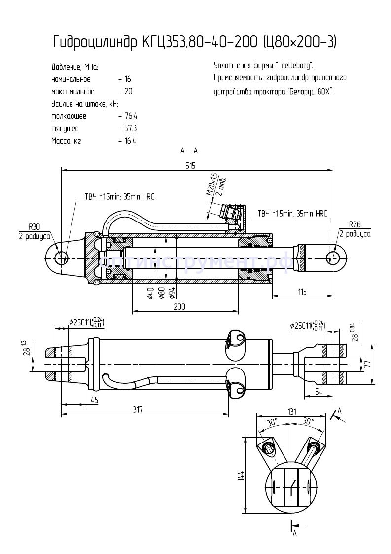 Гидроцилиндр прицепного устройства трактора "Белорус 80Х" КГЦ 353.80-40-200 в продаже по цене 11 235 руб. в Интернет-магазине Проф-инструмент с доставкой в Симферополе и Крыму. Звоните по телефону +8 (800) 302-10-51.