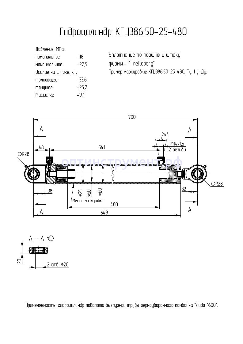 Гидроцилиндр поворота выгрузной трубы зерноуборочного комбайна "Лида 1600". КГЦ 386.50-25-480 в продаже по цене 8 460 руб. в Интернет-магазине Проф-инструмент с доставкой в Симферополе и Крыму. Звоните по телефону +8 (800) 302-10-51.