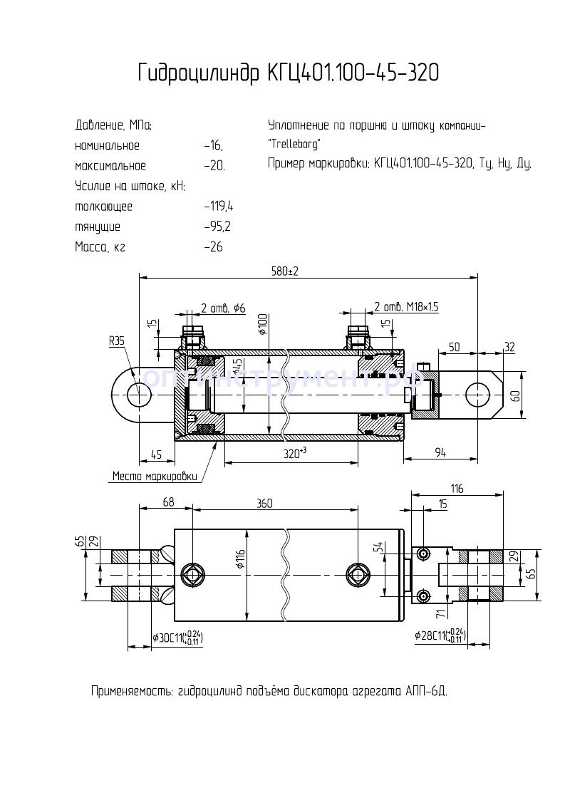 Гидроцилиндр подъёма дискатора агрегата "АПП-6Д" КГЦ 401.100-45-320 в продаже по цене 13 695 руб. в Интернет-магазине Проф-инструмент с доставкой в Симферополе и Крыму. Звоните по телефону +8 (800) 302-10-51.