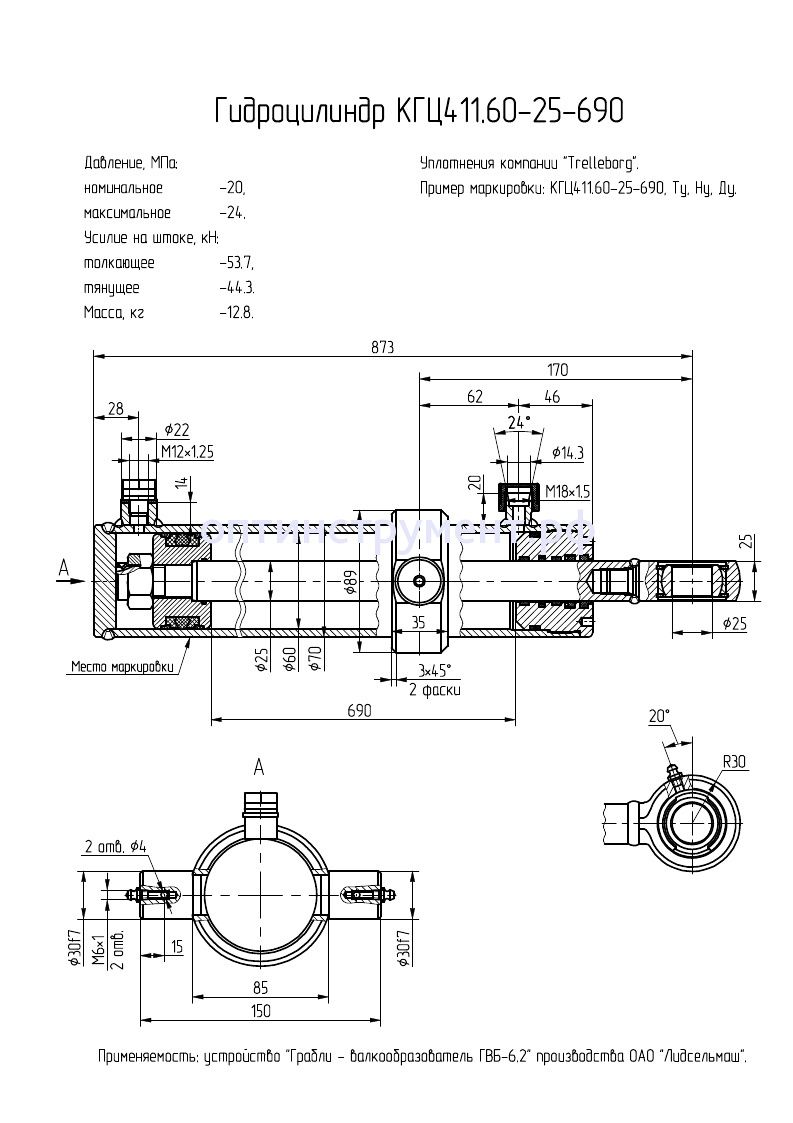 Гидроцилиндр КГЦ 411.60-25-690 в продаже по цене 11 700 руб. в Интернет-магазине Проф-инструмент с доставкой в Симферополе и Крыму. Звоните по телефону +8 (800) 302-10-51.