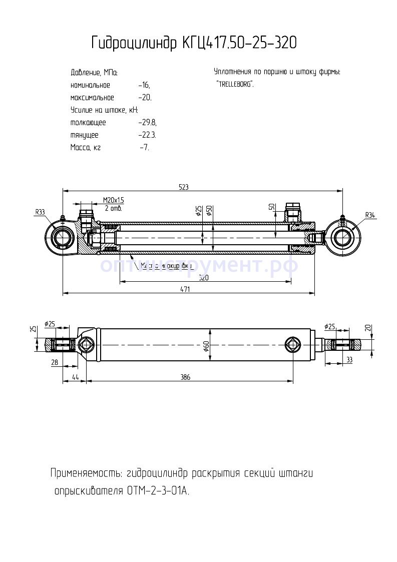 Гидроцилиндр раскрытия секций штанги опрыскивателя (ОТМ-2-3-01А) КГЦ 417.50-25-320 в продаже по цене 8 445 руб. в Интернет-магазине Проф-инструмент с доставкой в Симферополе и Крыму. Звоните по телефону +8 (800) 302-10-51.