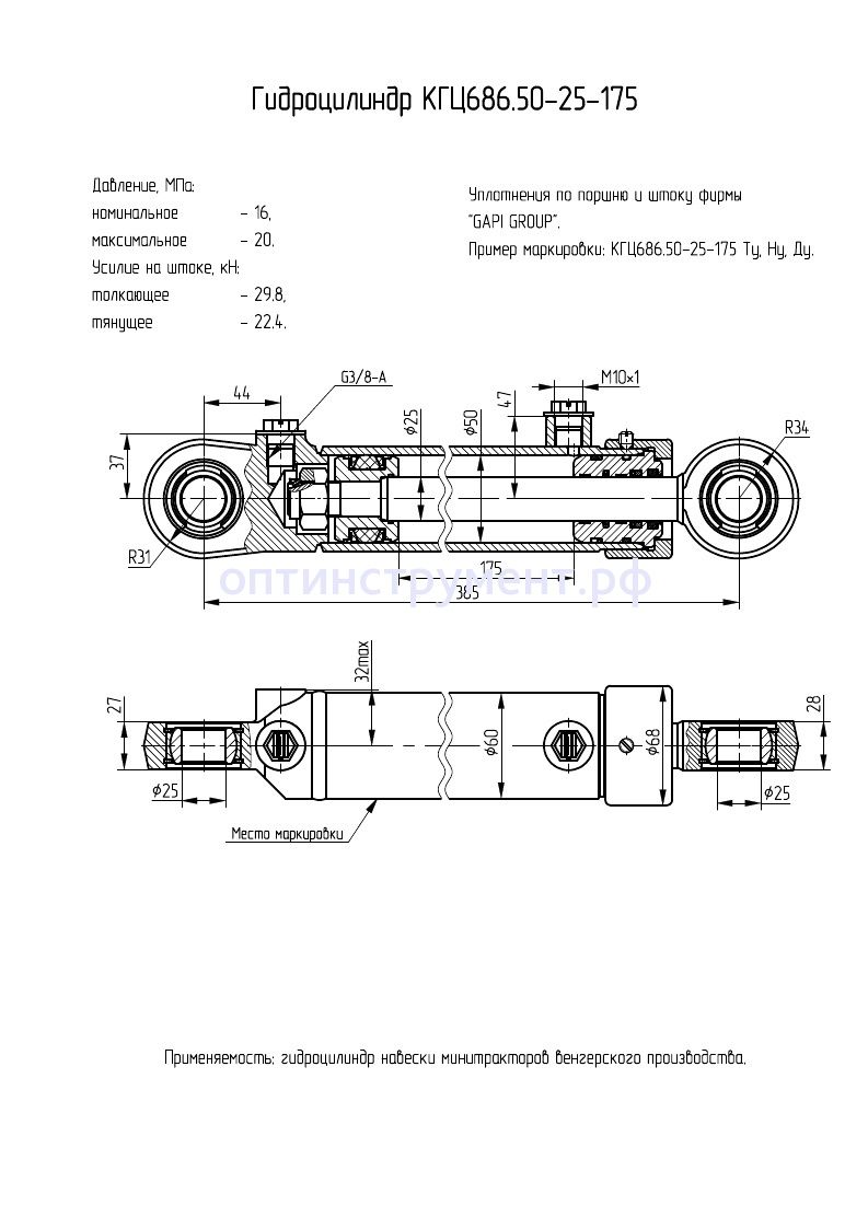 Гидроцилиндр навески минитракторов венгерского производства КГЦ 686.50-25-175 в продаже по цене 0 руб. в Интернет-магазине Проф-инструмент с доставкой в Симферополе и Крыму. Звоните по телефону +8 (800) 302-10-51.