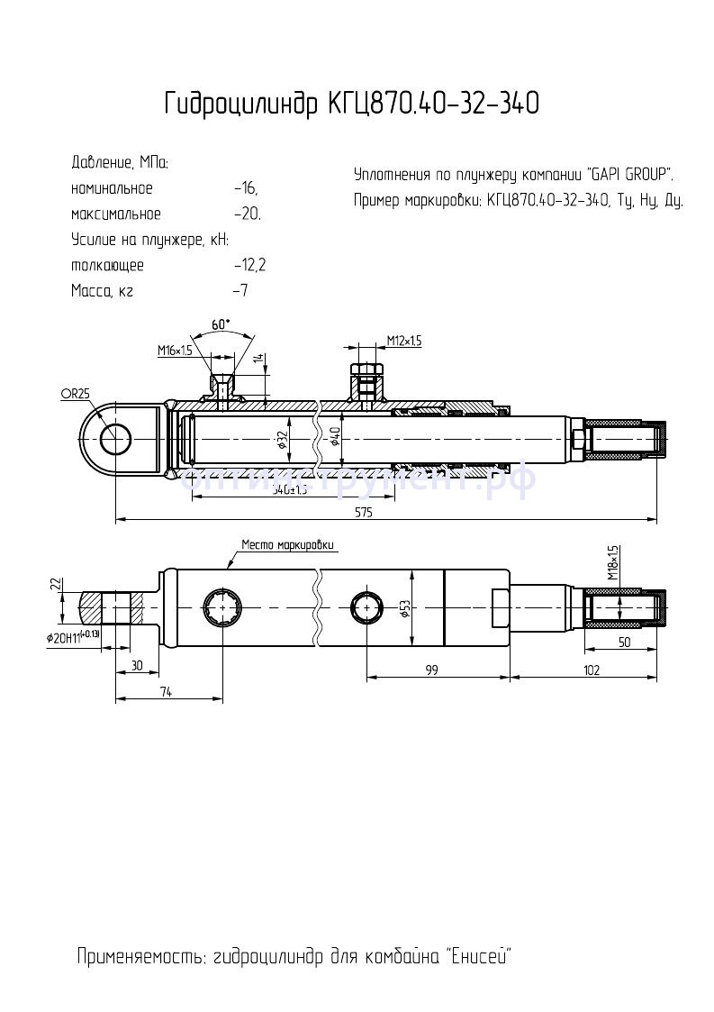Гидроцилиндр комбайна "Енисей" КГЦ 870.40-32-340 в продаже по цене 0 руб. в Интернет-магазине Проф-инструмент с доставкой в Симферополе и Крыму. Звоните по телефону +8 (800) 302-10-51.