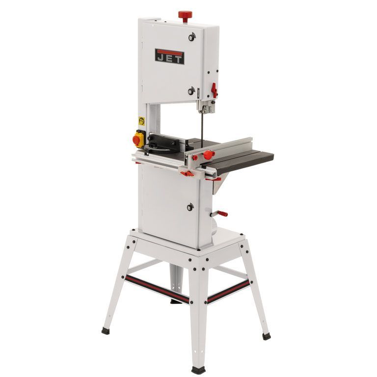 Jet JBS-12 – универсальная ленточная пила для частных мастерских, предназначенная для любительской эксплуатации, но часто приобретается и профессионалами в качестве вспомогательного инструмента, дополняющего циркулярную пилу. Такая популярность вызвана хорошим балансом характеристик, конструкция пилы хоть и простая относительно профессиональных моделей, но надежная и не имеет «подводных камней». Неоспоримые достоинства модели – массивный чугунный стол, гарантирующий работу без вибраций, двухскоростная ременная передача, позволяющая выбирать режим резания, простые в настройке трехточечные направляющие пильного полотна на шарикоподшипниках. В штатную комплектацию станка входит подставка для напольной установки.