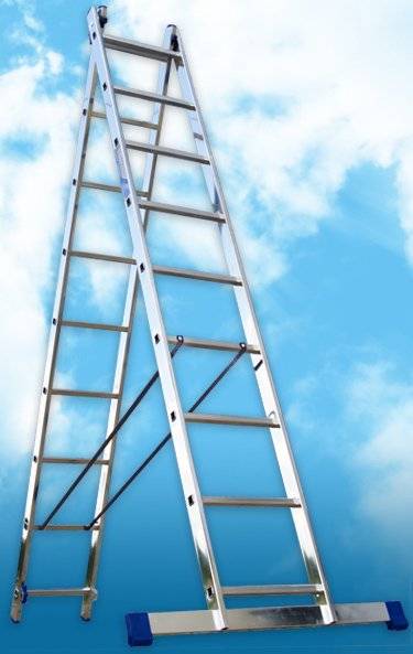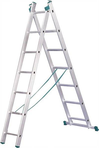 Лестница-стремянка Алюмет двухсекционная универсальная 5208 2x8 в продаже по цене в Интернет-магазине Проф-инструмент с доставкой в Симферополе и Крыму. Звоните по телефону +8 (800) 302-10-51.