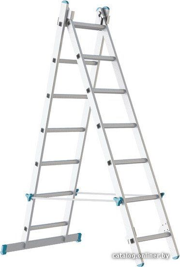 Промышленную двухсекционную лестницу можно использовать как классическую приставную лестницу или как стремянку с двусторонним подъемом. Лестница из специального алюминиевого сплава, который обеспечивает максимальную надежность и долговечность работы лестницы. Устойчивость алюминиевой лестницы в любом положении обеспечивает широкий стабилизирующий брус, который надежно крепится в профиле стоек. Стяжка безопасности предохраняет лестницу от раскладывания. Специально сконструированные ступени предотвращают скольжение.