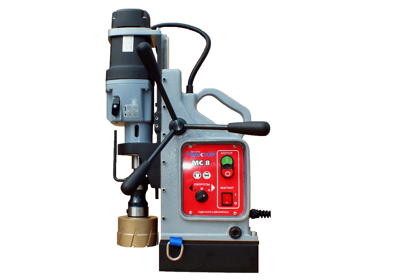 Магнитный сверлильный станок МС-8+ зарекомендовал себя как надежный и неприхотливый станок для проведения различных строительных, ремонтных и восстановительных работ, как в гражданской, так и в военной промышленности. Качество применяемых материалов и новейшие технологические решения совместно с мощным двигателем, тестируемым перед установкой, позволяют на высоком уровне выполнять сверление отверстий корончатым сверлом до 110 мм, обычным сверлом до 32 мм и нарезать резьбу до 24 мм.