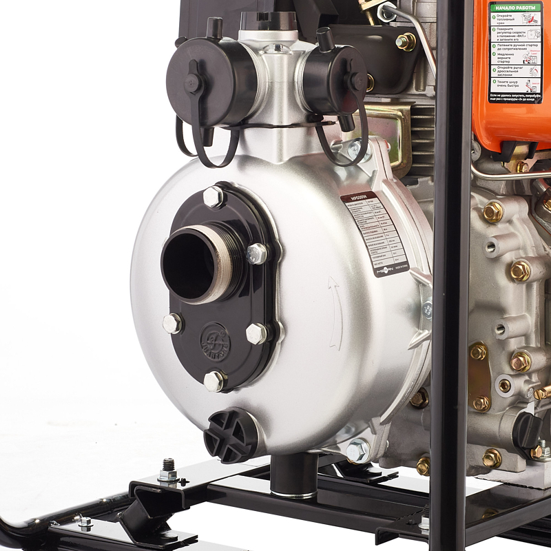 Дизельная высоконапорная мотопомпа. Тушение пожаров, перекачка воды на дальние растояние, полив. Мощность 5.4 лс, Производительность 18 куб м/час, напор 80 м, двигатель 186FA, D вх/вых 50/50-40-40 мм, размер частиц 1 мм, бак 3.5 л.