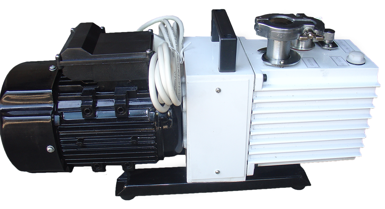 Роторно-пластинчатый электронасос типа 2НВР-5ДМ. Процесс откачки в этом насосе основан на всасывании и выталкивании газа за счет периодического изменения объема рабочей камеры. Рабочая камера образуется цилиндром и эксцентрично установленным в нем вращающимся ротором, в прорези которого помещены пластины (лопатки), прижимающиеся пружинами к поверхности цилиндра. Насос 2НВР-5ДМ моноблочной конструкции с механическим устройством для автоматического отсечения откачиваемого объема и выпуска воздуха в полость цилиндра при отключении питающей сети.