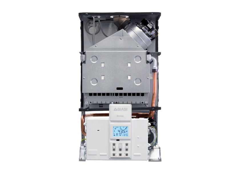 INOVIA – двухконтурный настенный газовый котел предназначен для небольших систем отопления и горячего водоснабжения. Оснащен двумя теплообменниками: первичный – медный для нагрева системы отопления и вторичный – пластинчатый изготовленный из нержавеющей стали служит для нагрева воды горячего водоснабжения.