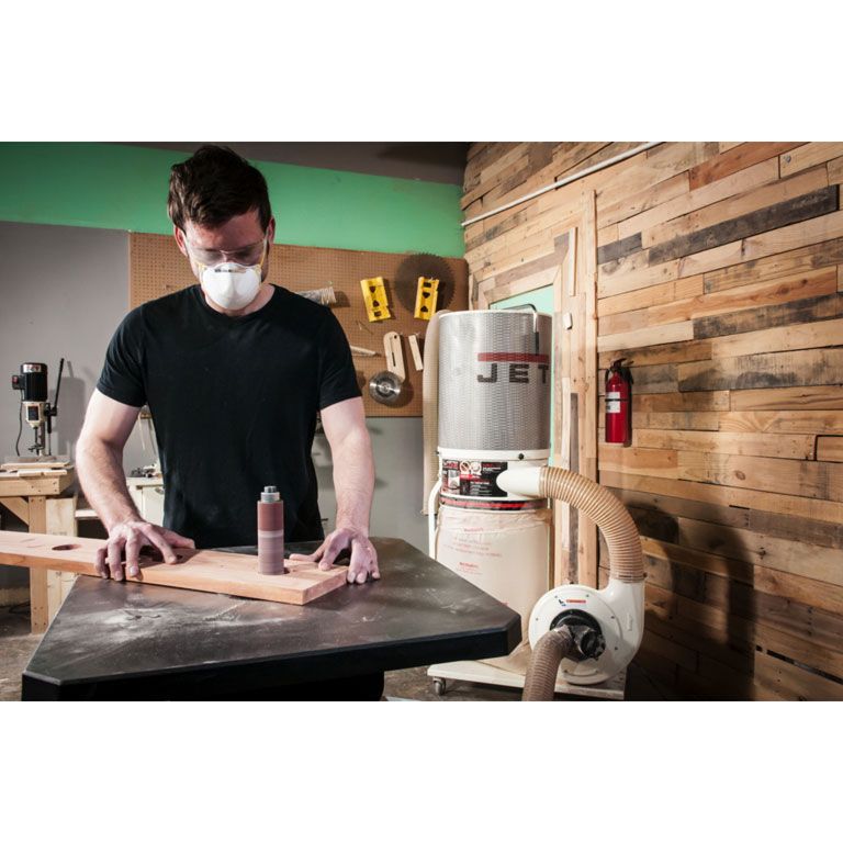 Стандартная комплектация включает в себя 10 шлифовальных шпинделей с диаметром от 6 до 100 миллиметров, а также кольцевые вставки в рабочий стол с круглым и овальным отверстием (для работы в наклонном положении стола). Расходный материал – абразивные гильзы – предлагаются со склада Jet в широком ассортименте.