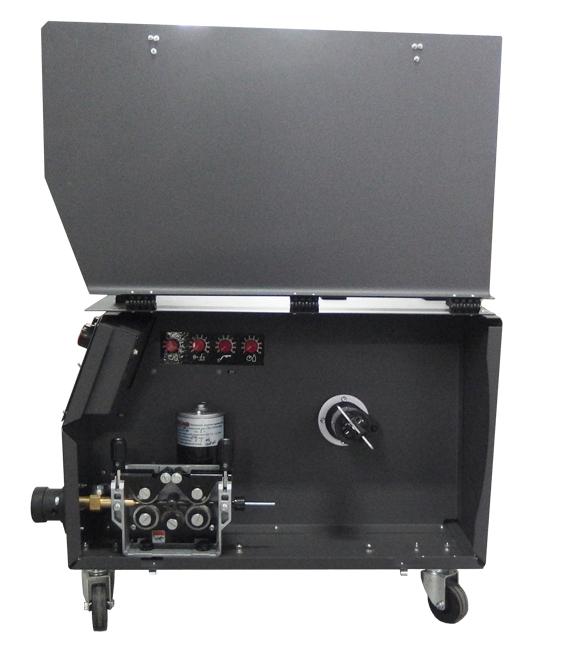 - Плавная регулировка выходного напряжения сварочного источника и скорости подачи электродной проволоки с подающего механизма;